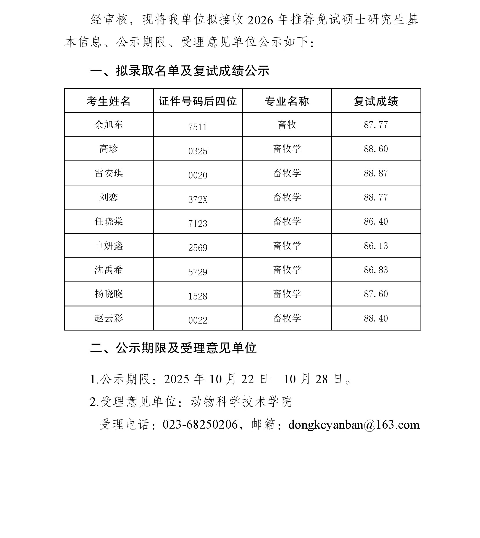 关于接收2026年推荐免试硕士研究生及复试成绩的公示